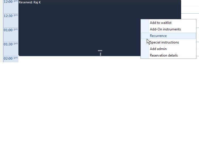 2.right click on the reservation, it opens radmenu to select the options from the raditem list.