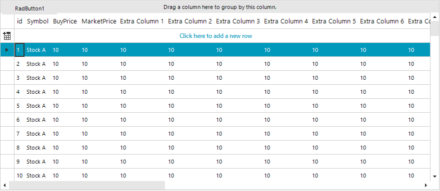 table1.Rows.Add(i, "Stock A, "10", "10", "10", "10", "10", "10", "10", "10", "10", "10", "10", "10", "10", "10", "10", "10", "10", "10", "10", "10", "10", "10")