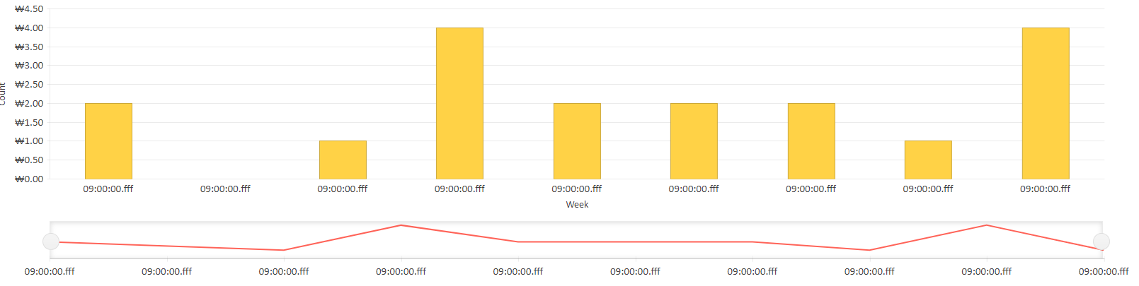 I'd like to make the weekly count a chart. Therefore, my category data is a number from 1 to 53.