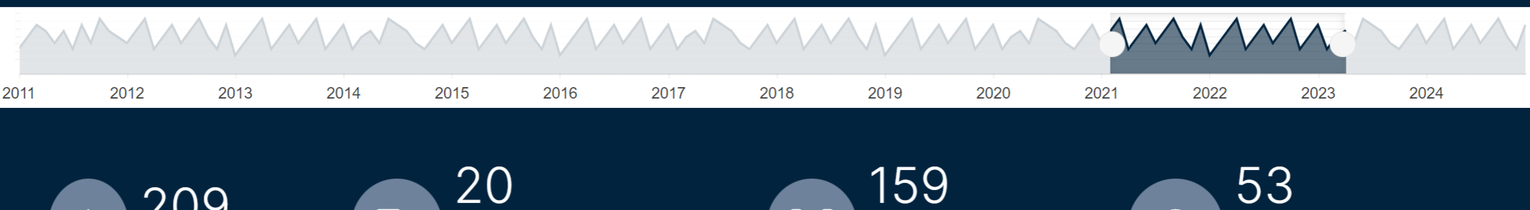 </style><TelerikStockChartHeight="450px"Width="700px"><StockChartCategoryAxes><StockChartCategoryAxisBaseUnit="@ChartCategoryAxisBaseUnit.Years"></StockChartCategoryAxis></StockChartCategoryAxes><StockChartSeriesItems><StockChartSeriesType="StockChartSeriesType.Area"Name="Product 1"Data="@Data"Field="@nameof(ChartSeriesData.Product1Sales)"CategoryField="@nameof(ChartSeriesData.Year)"></StockChartSeries><StockChartSeriesType="StockChartSeriesType.Area"Name="Product 1"Data="@Data"Field="@nameof(ChartSeriesData.Product2Sales)"CategoryField="@nameof(ChartSeriesData.Year)"></StockChartSeries><StockChartNavigator><StockChartNavigatorSeriesItems><StockChartNavigatorSeriesType="StockChartSeriesType.Line"Name="Product 1"Data="@Data"Field="@(nameof(ChartSeriesData.Product1Sales))"CategoryField="@(nameof(ChartSeriesData.Year))"></StockChartNavigatorSeries></StockChartNavigatorSeriesItems></StockChartNavigator></StockChartSeriesItems></TelerikStockChart>