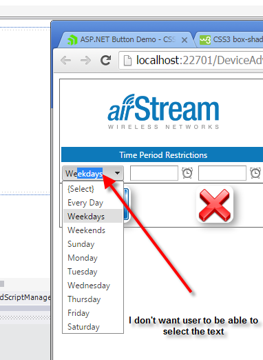 Hi, how can I stop the user from highlighting text of the selected item in a combo?