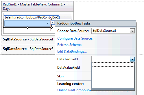 The DataSourceID of 'cbDays' must be the ID of a control of type IDataSource. A control with ID 'SqlDataSource3' could not be found.