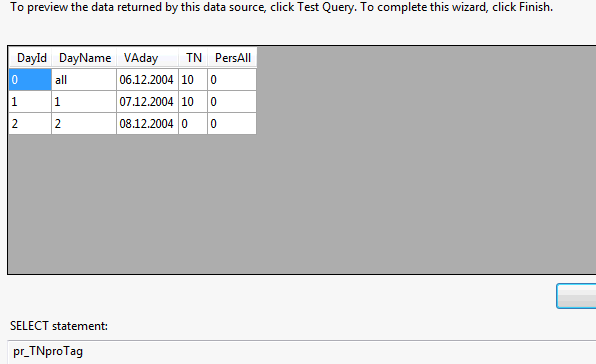 If I take instead of StoredProcedure a Select.. define - no problem. <div class="class_1" style="width:512px"> <telerik:RadGrid ID="RadGrid1" runat="server" CellSpacing="0" DataSourceID="SqlDataSource1" GridLines="None"><MasterTableView AutoGenerateColumns="False" DataKeyNames="DokId" DataSourceID="SqlDataSource1"><CommandItemSettings ExportToPdfText="Export to PDF"></CommandItemSettings><RowIndicatorColumn FilterControlAltText="Filter RowIndicator column"><HeaderStyle Width="20px"></HeaderStyle></RowIndicatorColumn><ExpandCollapseColumn FilterControlAltText="Filter ExpandColumn column"><HeaderStyle Width="20px"></HeaderStyle></ExpandCollapseColumn> <Columns> <telerik:GridTemplateColumn DataField="DokuType" FilterControlAltText="Filter column column" HeaderText="Materials" UniqueName="DokuType"> <EditItemTemplate> <telerik:RadComboBox runat="server"> </telerik:RadComboBox> </EditItemTemplate> <ItemTemplate> <telerik:RadComboBox ID="RadComboBox1" Runat="server"> <Items> <telerik:RadComboBoxItem runat="server" Text="Documentation" Value="Tagungsunterlagen" /> <telerik:RadComboBoxItem runat="server" Text="Books" Value="Bücher" /> <telerik:RadComboBoxItem runat="server" Text="Other" Value="Sonstiges" /> </Items> </telerik:RadComboBox> </ItemTemplate> </telerik:GridTemplateColumn> <telerik:GridTemplateColumn DataField="VAday" FilterControlAltText="Filter column1 column" HeaderText="Days" UniqueName="VAday"> <EditItemTemplate> <telerik:RadComboBox runat="server"> </telerik:RadComboBox> </EditItemTemplate> <ItemTemplate> <telerik:RadComboBox ID="RadComboBox2" Runat="server" DataSourceID="SqlDataSource3" SelectedValue='<%# Bind("VAday") %>'> </telerik:RadComboBox> </ItemTemplate> </telerik:GridTemplateColumn> <telerik:GridTemplateColumn FilterControlAltText="Filter Delegates column" HeaderText="Delegates" UniqueName="Delegates"> </telerik:GridTemplateColumn> <telerik:GridTemplateColumn DataField="Menge" DataType="System.Int16" FilterControlAltText="Filter Menge column" HeaderText="Additional Amount" UniqueName="Menge"> </telerik:GridTemplateColumn> <telerik:GridTemplateColumn DataField="Price" FilterControlAltText="Filter DokuType column" HeaderText="Unit Price" UniqueName="Price"> <EditItemTemplate> <asp:TextBox ID="DokuTypeTextBox" runat="server" Text='<%# Bind("DokuType") %>'></asp:TextBox> </EditItemTemplate> <ItemTemplate> <asp:Label ID="DokuTypeLabel" runat="server" Text='<%# Eval("DokuType") %>'></asp:Label> </ItemTemplate> </telerik:GridTemplateColumn> </Columns><EditFormSettings><EditColumn FilterControlAltText="Filter EditCommandColumn column"></EditColumn></EditFormSettings></MasterTableView><FilterMenu EnableImageSprites="False"></FilterMenu><HeaderContextMenu CssClass="GridContextMenu GridContextMenu_Default"></HeaderContextMenu> </telerik:RadGrid> <asp:SqlDataSource ID="SqlDataSource1" runat="server" ConnectionString="<%$ ConnectionStrings:webzeus %>" SelectCommand="SELECT * FROM [Dokus] WHERE ([Number] = @Number)"> <SelectParameters> <asp:SessionParameter Name="Number" SessionField="curNumber" Type="Int32" /> </SelectParameters> </asp:SqlDataSource> <asp:SqlDataSource ID="SqlDataSource3" runat="server" ConnectionString="<%$ ConnectionStrings:webzeus %>" SelectCommand="pr_TNproTag" SelectCommandType="StoredProcedure"> <SelectParameters> <asp:SessionParameter DefaultValue="12814" Name="curNumber" SessionField="curNumber" Type="Int32" /> <asp:Parameter DefaultValue="Dokus" Name="curPar" Type="String" /> </SelectParameters> </asp:SqlDataSource> </div></div>