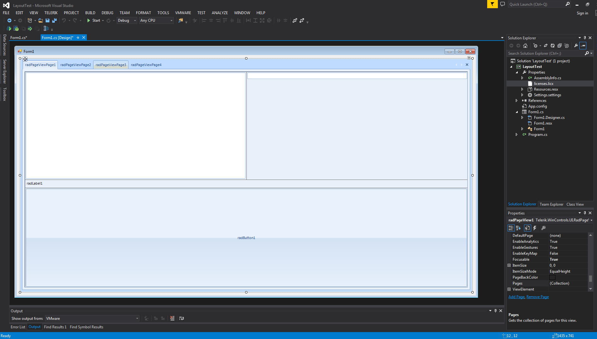 I have a RadPageView with 4 tabs, each page view I would like to control my layout with a RadLayoutControl. In the designer view I setup a RadPageView on my first tab and place various UI elements (RadButtons, RadTextBox, etc. etc.) and everything behaves as expected. When I go to my second tab and setup a RadLayoutControl, it is almost as if the designer can see the layoutControlItems elements of the RadLayoutControl from the first page while I'm trying to setup the second page. Not only that but if you do manage to put two RadLayoutControls on various pages, the event handler that deals with the resizing event seems to throw an exception. Should I be able to use multiple RadLayoutControls in this way?