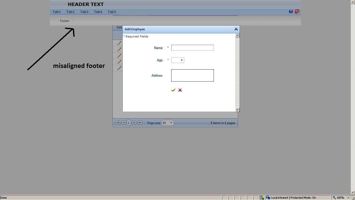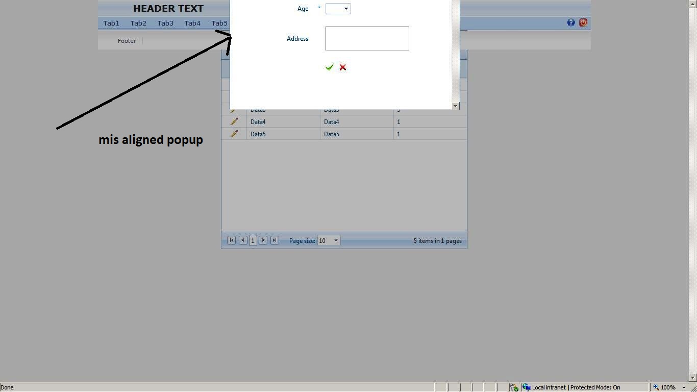 I am using a radgird with static headers, modal popup edit mode and different userccontrols for insert and edit. Things are perfectly working in IE 8. But i am facing lot of strange issues when accessed in ie 6 and firefox 3.5 and above,