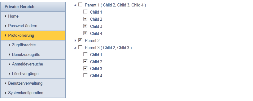 Or is there a possibility to achieve this treeview-checkbox behavior with a grouping grid or a panelbar? There will be only one child-level per root-node.