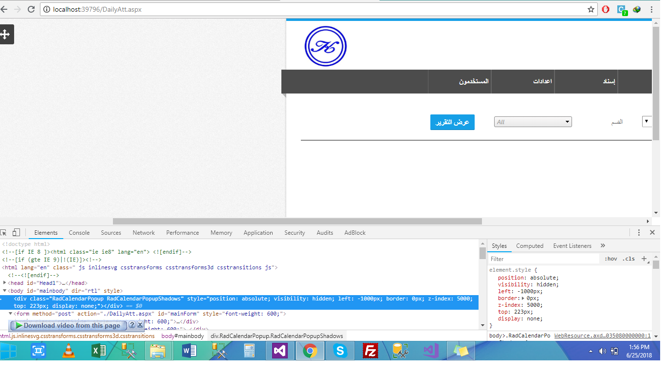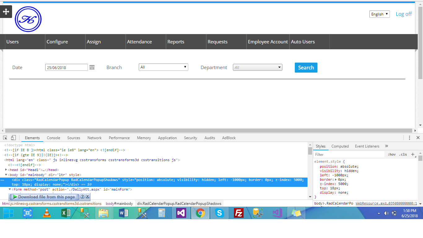 An issue appear while selecting date, if we see in html code a style left:-1000px apply on RadCalendarPopup RadCalendarPopupShadows that disturb style by creating extra space on the page (pic attach)