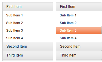 ul.k-panelbar .k-state-hover{ background-color: #f0713a; color: #fff;}The k-panelbar CSS class is used for two reasons - limit the effect of the CSS rule to the PanelBar only, and increase the selector's specificity, so that it can override the skin styles.