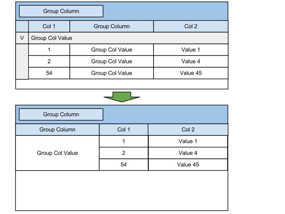 In practice, I would not require the ability for the user to specify groups. This will be used to group items in a fixed and pre-defined manner. The ability to sort or otherwise interact with the group data is also not that important to me, however, I will need to interact with and be able to edit the information in the actual rows (ungrouped columns).