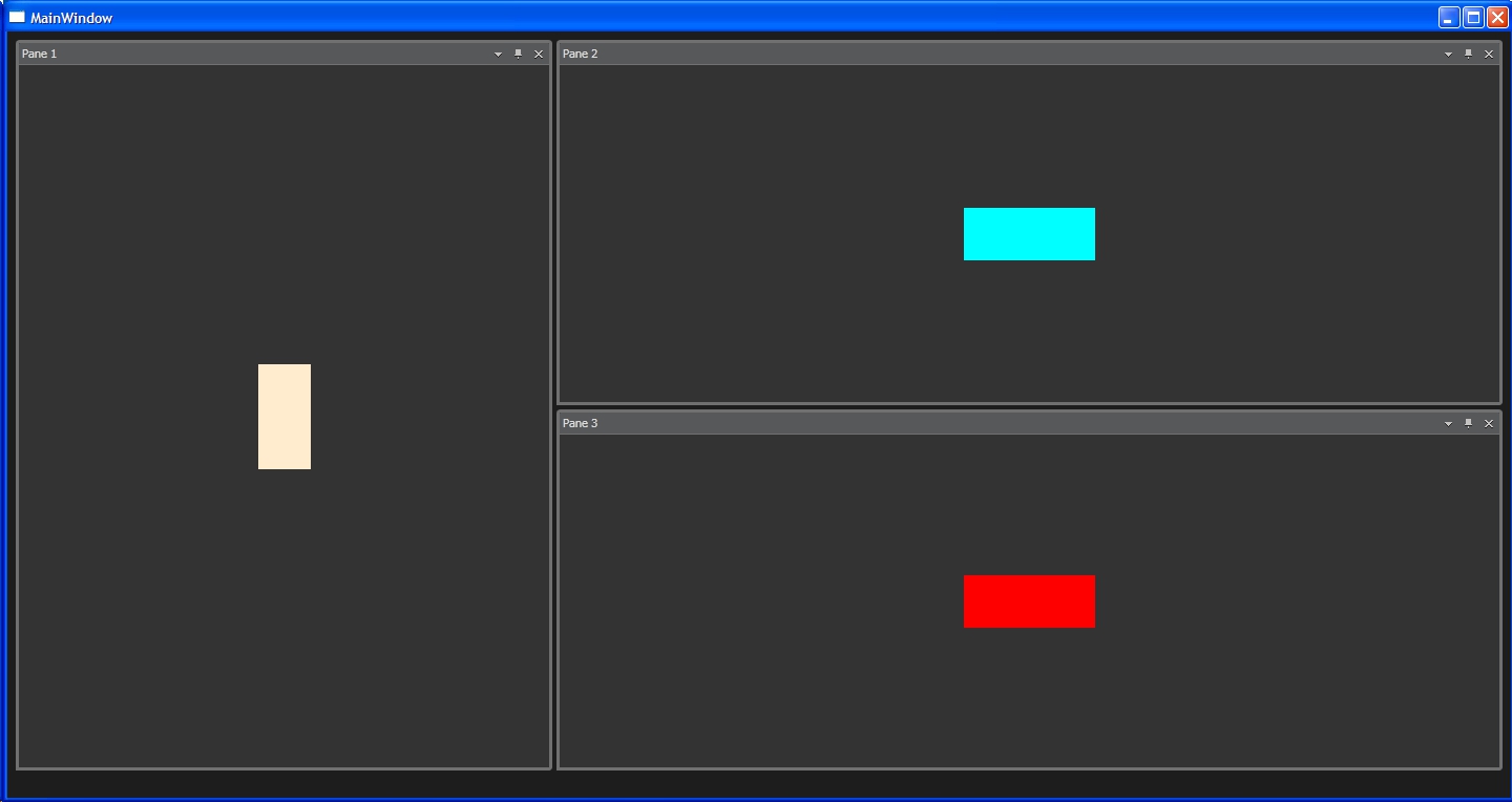 <Window x:Class="WpfApplication1.MainWindow" xmlns:telerik="http://schemas.telerik.com/2008/xaml/presentation" Title="MainWindow"> <Window.Resources> <ResourceDictionary> <ResourceDictionary.MergedDictionaries> <ResourceDictionary Source="Telerik.Windows.Controls.xaml" /> <ResourceDictionary Source="Telerik.Windows.Controls.Docking.xaml" /> </ResourceDictionary.MergedDictionaries> <Thickness x:Key="PaneGroup_BorderThickness">3</Thickness> <LinearGradientBrush x:Key="PaneGroup_BorderBrush" EndPoint="0.5,1" StartPoint="0.5,0"> <GradientStop Color="#FF809EAD" Offset="0"/> <GradientStop Color="#FFADAFB2" Offset="1"/> </LinearGradientBrush> <Style BasedOn="{StaticResource RadPaneGroupStyle}" TargetType="telerik:RadPaneGroup"> <Setter Property="BorderThickness" Value="{StaticResource PaneGroup_BorderThickness}" /> <Setter Property="BorderBrush" Value="{StaticResource PaneGroup_BorderBrush}" /> </Style> <LinearGradientBrush x:Key="PaneGroup_PaneFrame_Brush" EndPoint="0.5,1" StartPoint="0.5,0"> <GradientStop Color="#FF809EAD" Offset="0"/> <GradientStop Color="#FFADAFB2" Offset="1"/> </LinearGradientBrush> <ControlTemplate x:Key="PaneGroup_PaneFrameTemplate" TargetType="ContentControl"> <Border x:Name="Root" BorderBrush="{StaticResource PaneGroup_PaneFrame_Brush}" Background="{TemplateBinding Background}" BorderThickness="{TemplateBinding BorderThickness}" CornerRadius="{StaticResource PaneGroup_PaneFrame_CornerRadius}"> <ContentPresenter /> </Border> </ControlTemplate> <Style BasedOn="{StaticResource PaneGroup_PaneFrameStyle}" TargetType="ContentControl"> <Setter Property="Template" Value="{StaticResource PaneGroup_PaneFrameTemplate}" /> </Style> </ResourceDictionary> </Window.Resources> <Grid> <telerik:RadDocking Name="u_rd_Docking" BorderThickness="4" Grid.Row="1"> <telerik:RadSplitContainer InitialPosition="DockedTop" Height="700" > <telerik:RadSplitContainer telerik:ProportionalStackPanel.RelativeSize="24,100" > <telerik:RadPaneGroup> <telerik:RadPane Header="Pane 1" > <Rectangle Width="50" Height="100" Fill="BlanchedAlmond" /> </telerik:RadPane> </telerik:RadPaneGroup> </telerik:RadSplitContainer> <telerik:RadSplitContainer Orientation="Vertical" telerik:ProportionalStackPanel.RelativeSize="42.5,100" > <telerik:RadPaneGroup> <telerik:RadPane Header="Pane 2" > <Rectangle Width="125" Height="50" Fill="Aqua" /> </telerik:RadPane> </telerik:RadPaneGroup> <telerik:RadPaneGroup> <telerik:RadPane Header="Pane 3" > <Rectangle Width="125" Height="50" Fill="Red" /> </telerik:RadPane> </telerik:RadPaneGroup> </telerik:RadSplitContainer> </telerik:RadSplitContainer> </telerik:RadDocking> </Grid></Window>4 Answers, 1 is accepted