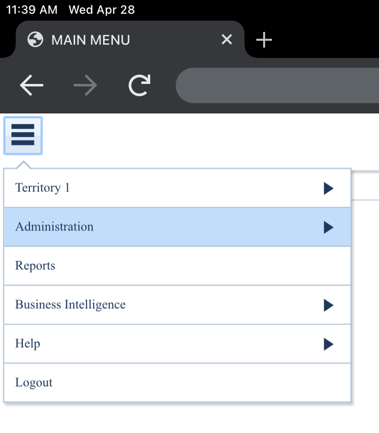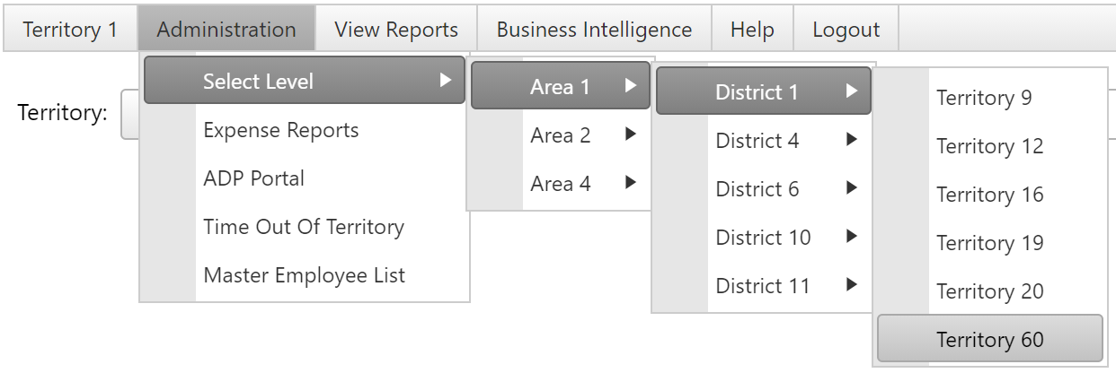 I have an ASP.NET webforms application which has been in production for a while that uses a hierarchical menu structure to allow the user to select the business "level" they wish to operate on (Area, District, and Territory). Most people have used their desktops to access this application.