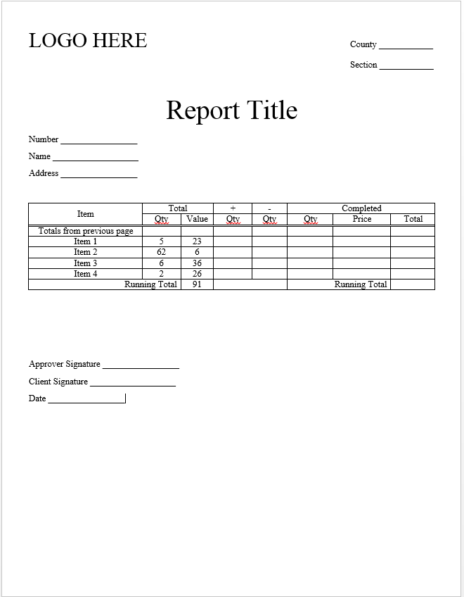 If you look a the example you can see that there is a header that I need to appear on every page. Under that header is a table that has the carryover at the top under the column headers and a running total at the bottom. Unfortunately I don't have any flexibility on the layout of this report so I cant just make it look different.