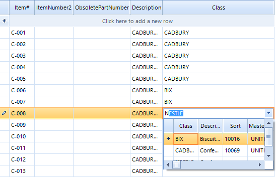 Example: See the screenshot. The class column is a multicombo. I key in the 'N' and it correctly completes it with 'NESTLE'. But the window that popped does not highlight the first 'N' option as it used to and when I next hit tab key, it does not set the value of the multicombo cell to 'NESTLE' but leaves it as the prior value until I type in the entire word.