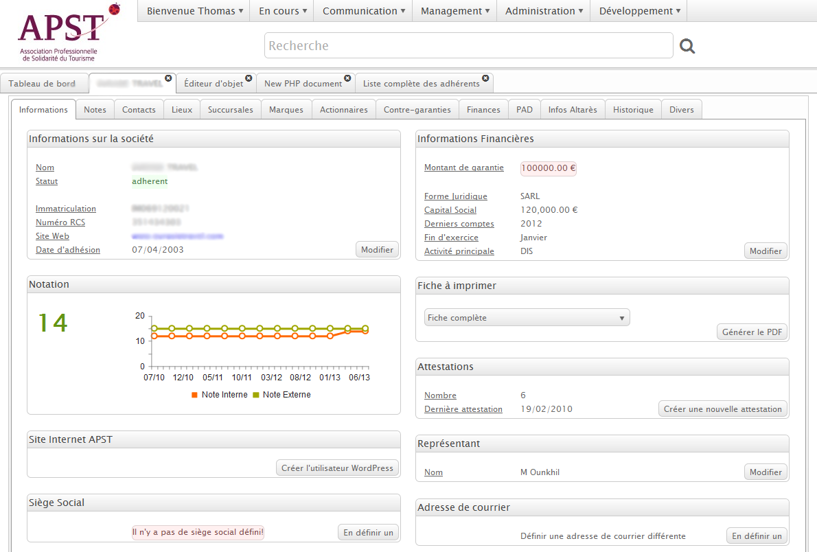 Here everything is MVVM: the whole tabstrips are populated through JS variables loaded through Ajax. All the tabs you don't see the content of are lists of items and charts, where you can add/edit/remove items and it's directly visible without reload. On the "Informations" tab (the one you see) however, there are general information blocks that I want to be able to edit through forms in a popup.