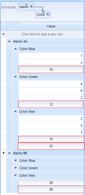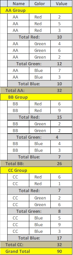 I want is to add the sum of the Column A group and the sum of the Column B group belonging to group A,