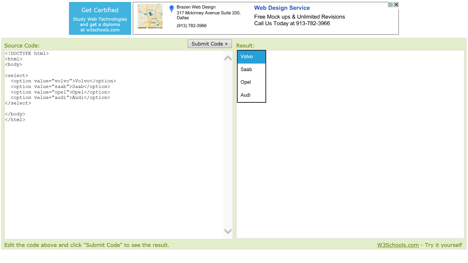 http://www.w3schools.com/tags/tryit.asp?filename=tryhtml_select