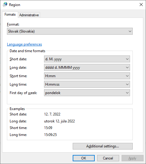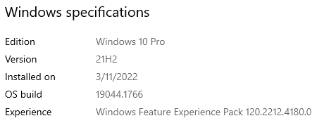 Hello, I have Win10, 21H2, build 19044.1766, english language, Slovak region settings.