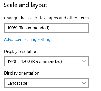 As for the zoom behavior. We don't make any progress here. I still wasn't able to reproduce it. If the same project demonstrates is working at your end and not on mine, this leads me to think that we need to focus on the DPI. Can you share the scaling and the resolution of the monitors which you are using? Just for the test can you run the SyntaxEditor First Look demo inside our Telerik UI for WinForms Demo application to check if this behavior is related to the project or if it is global for your machine.