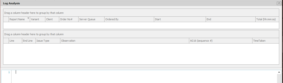 As for the LayoutControlGroup it is the DevExpress version of it I am using. I think it is similar to the Telerik version. There are two sections. The top section is a sort of header that provides limited information, the bottom section is where I have the radsyntaxcontrol inside which presents the entire log. The top section is minimizable which allows the radsyntaxcontrol to take up almost the entire form.