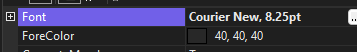 this.logViewer.SyntaxEditorElement.EditorFontFamily = new Telerik.WinControls.SyntaxEditor.UI.FontFamily("Courier New");But on the designer, it's just the default since I wanted to programmatically handle it and allow users to select a font: