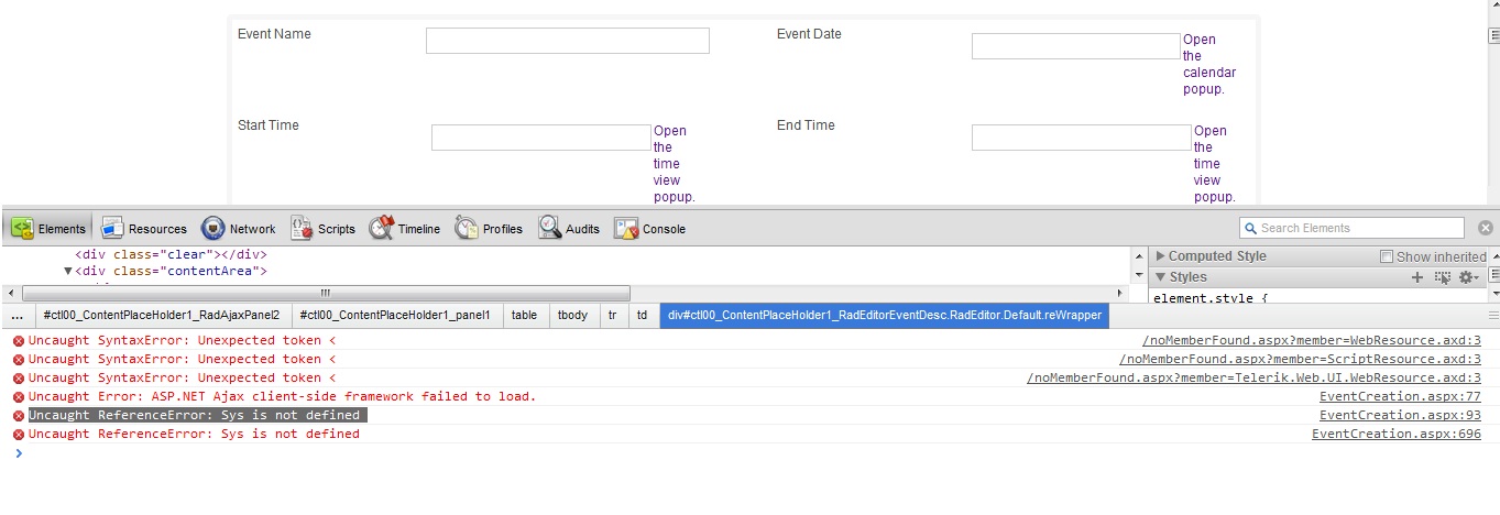 2. Uncaught Error: ASP.NET Ajax client-side framework failed to load.