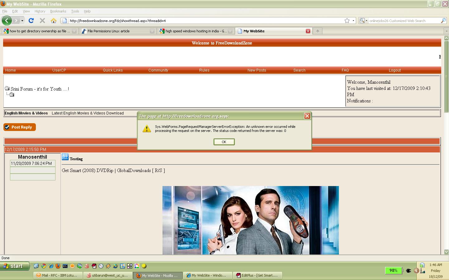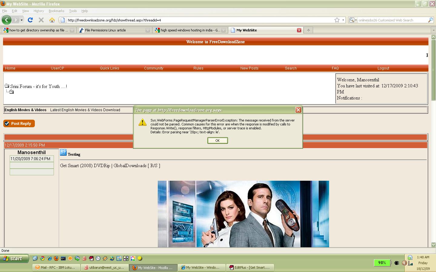 it dosen't give the error in the Internet Explorer. the error comes only in the Firefox.