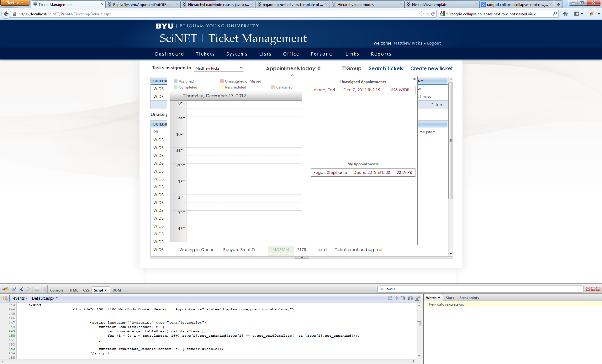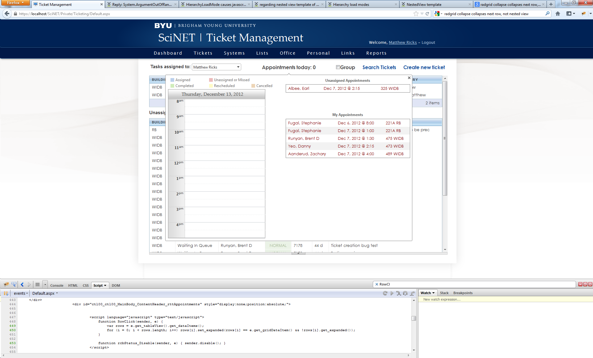 We have a RadToolTip containing a RadScheduler and two RadGrids. We want to keep these objects in sync, so we've employed a RadAjaxManager. Unfortunately, the events that we want to sync after are fired from controls within the NestedViews of the RadGrids. When EnableAjax is set to false, the following error is thrown: