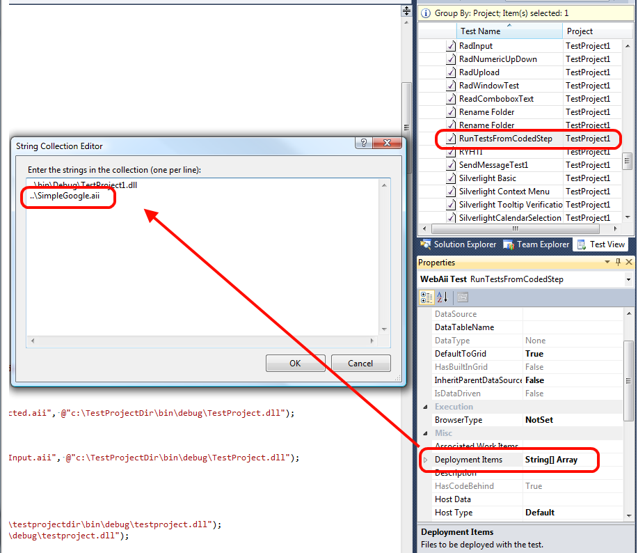 Within the deployment items it looks the same for these tests and the working ones - see attachment.
