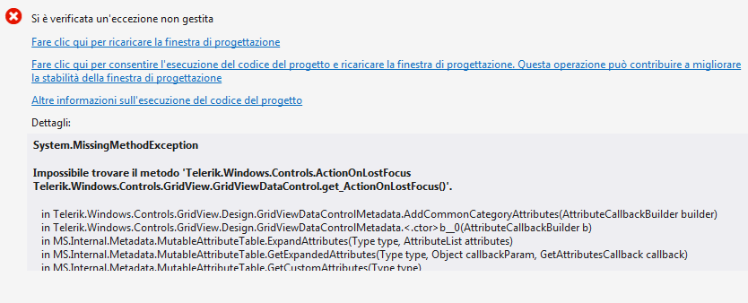 I have this problem in design-time, sometimes it appears this error when I show a GridView.