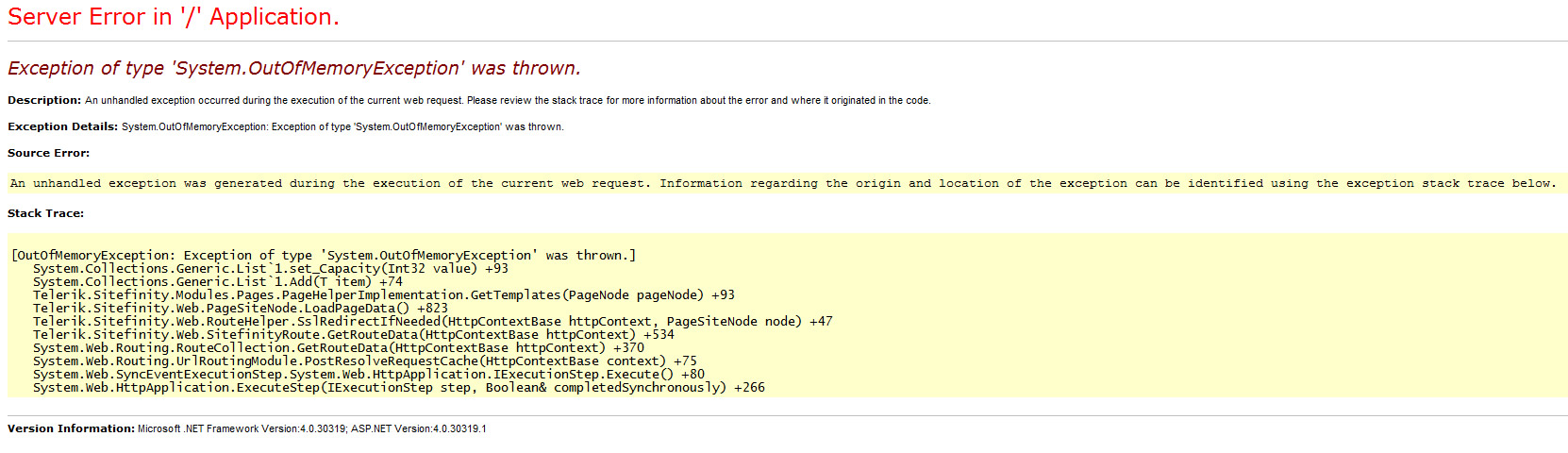 In any menu I go to within the Sitefinity CMS, I receive an error: