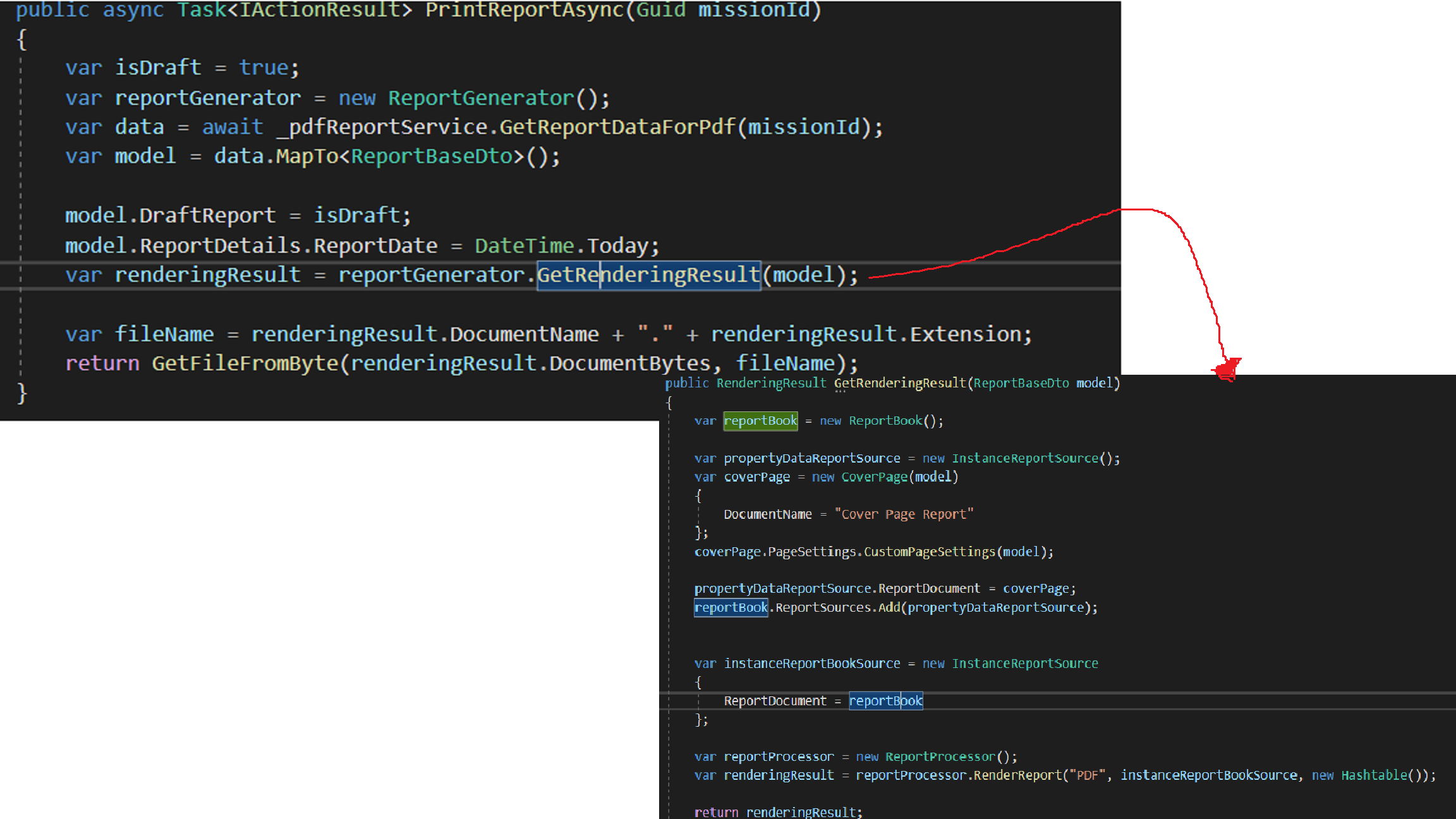 XDocument doc = CreateXDocument(reportInfo); //the trdx file