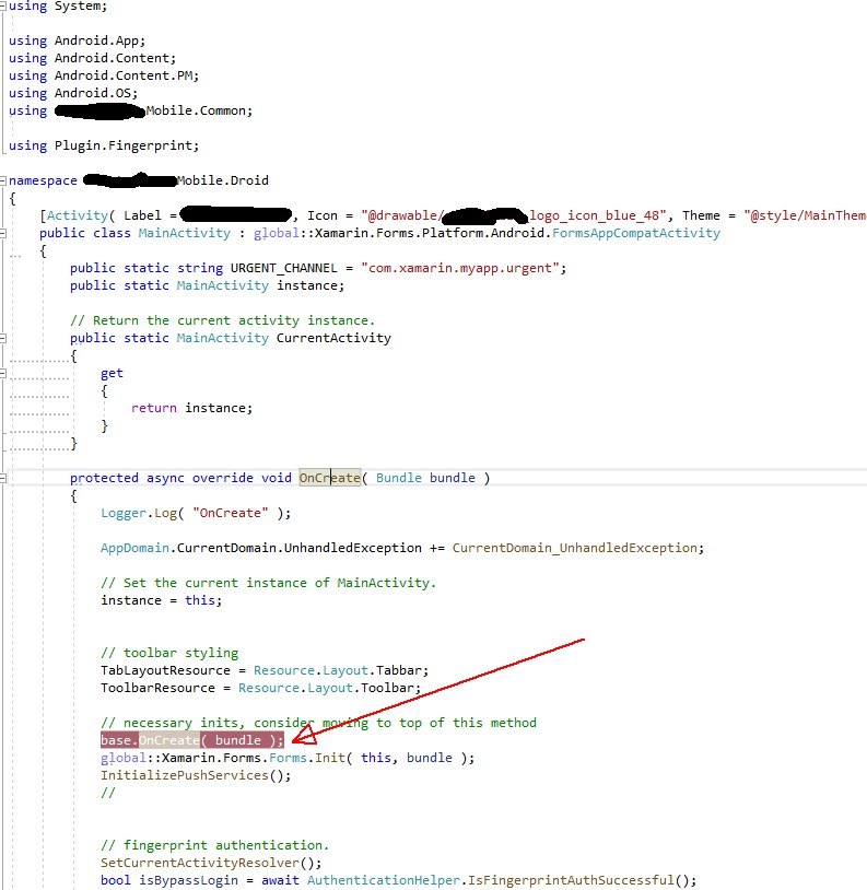 I did versions downgrade and now app crashes at MainActivity:: base.OnCreate( bundle );