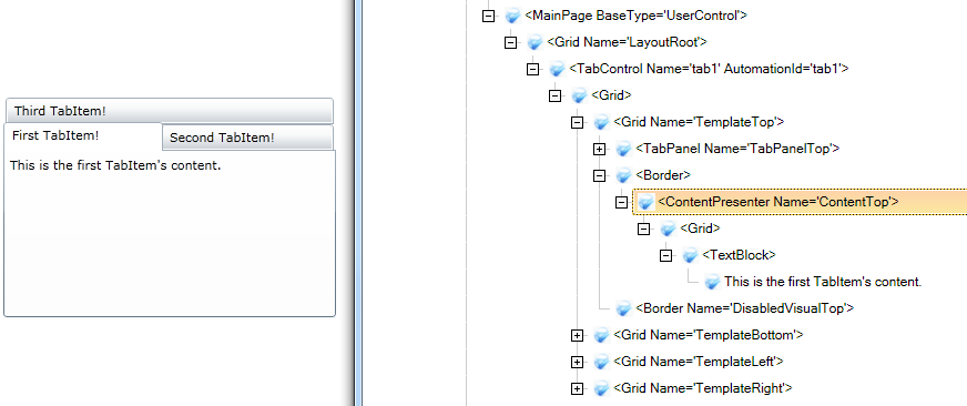 I'm trying to use the control ArtOfTest.WebAii.Silverlight.UI.TabControl and everything (At least what I used) working perfectly except property Content. I expected to find a reference to the control that is beeing displayed by selected tab but I only found an object with type string (at least I invoked the GetType over this property and I received System.String).