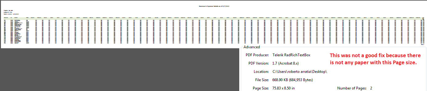 I have a problem with PDF export. My problem is that I have a lot of columns, I mean the amount of RadGridView columns is created dinamically, for example I have the following data: