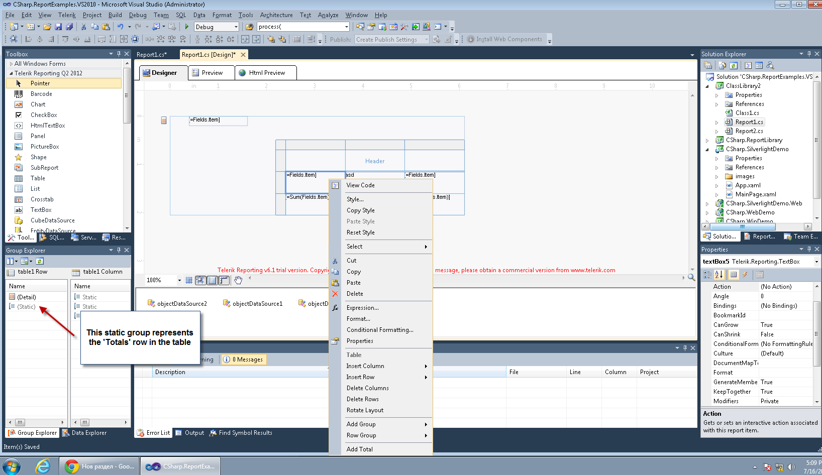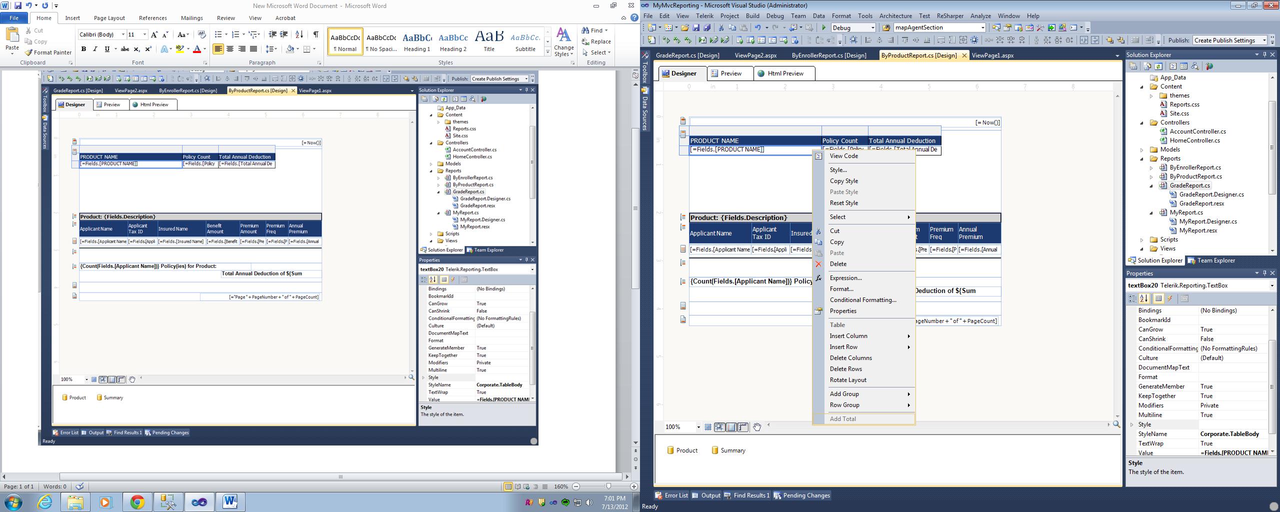 I am using Table Control in Report Header to show summary data for the report.