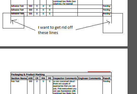 Hi, Thank You for reply. If I make Left, Right border None it will hide the border. I want Border for table but I do not want line that will show continuing on next page. I just want to remove those extra line. What need to be done for that.?
