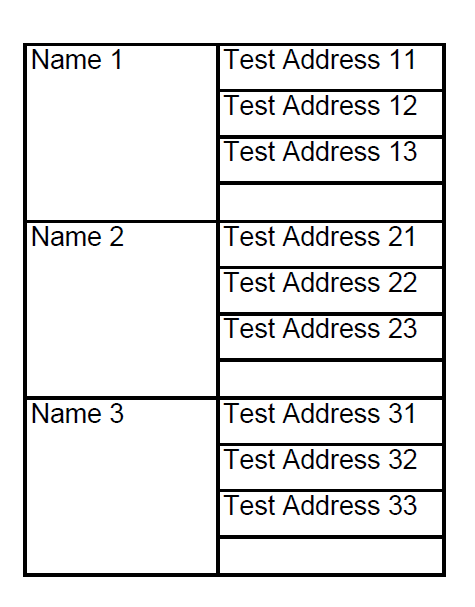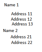 I am new to telerik report. I want to group data by name and address should show down to grouped property. Please find attached file that i generated from report. Please help how to get desired result that i attached.