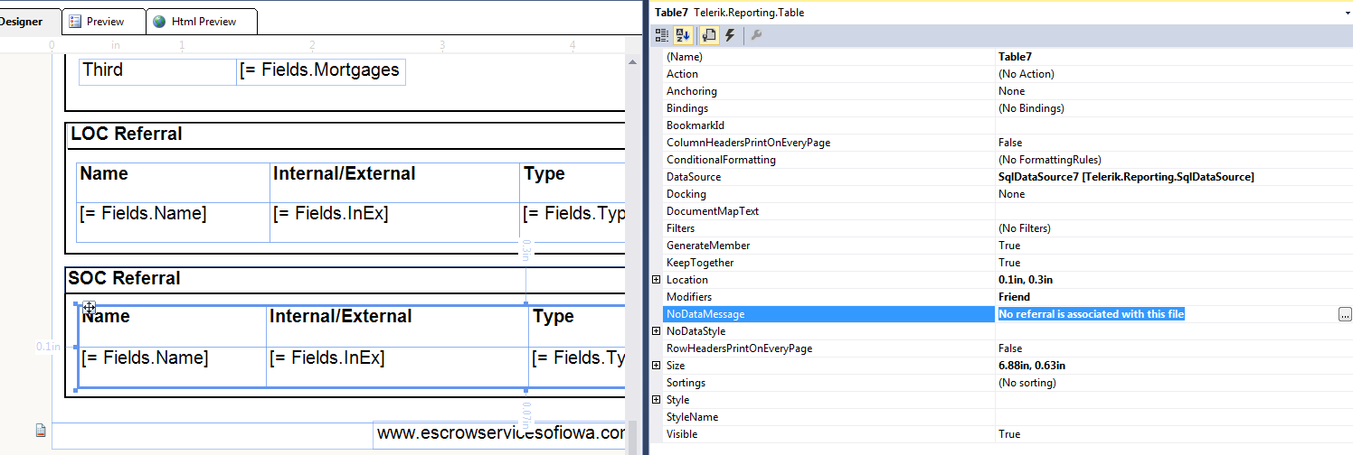 I am using telerik Control for table in telerik reporting PDF. I have set a table property "NoDataMessage" with text "XYZ". It is working fine when records are there but in case no record comes from database it throws exception "Index was out of range. Must be non-negative and less than the size of the collection. Parameter name: index". I am facing this issue when updated my telerik.reporting.dll from older version 11.0.17.118 to new version 11.1.17.614.