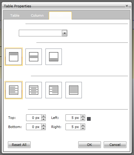 Since my application is using custom Silverlight style (JetPack), I'm having problems with the table properties, table column and table cell window.