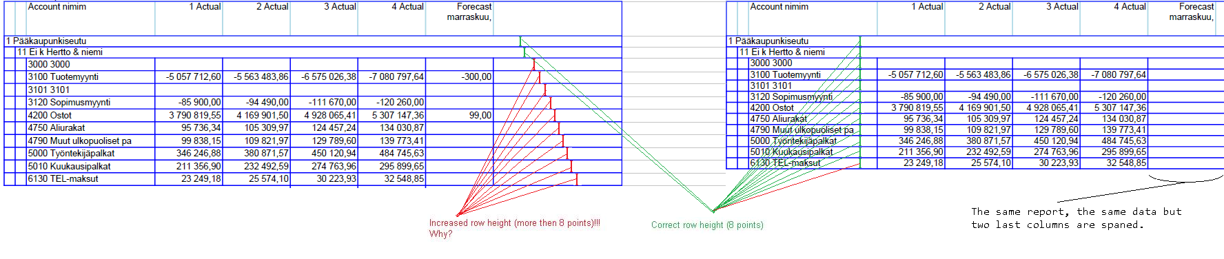 I found one more strange behavior: if I try to span two latest columns in the same report then the rows height are equal (see picture "telerik-reporting-table-row-growing-3.png").
