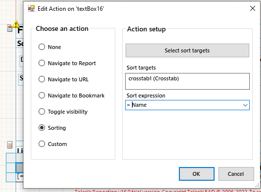 We designed reports with parameters and table. as i followed this document link for sorting in table https://docs.telerik.com/reporting/designing-reports/adding-interactivity-to-reports/actions/sorting-action/sorting-table-details. Which worked sorting in table. but issue is when i added report parameters to report sort icon not showing up and sorting not working. so could you please help me to resolve the issue as much as possible.