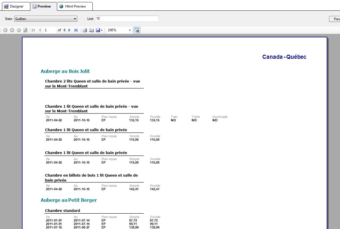 public partial class ProductsReport : Telerik.Reporting.Report { public ProductsReport() { InitializeComponent(); detail.ItemDataBound += detail_ItemDataBinding; } private void detail_ItemDataBinding(object sender, EventArgs e) { var section = sender as Telerik.Reporting.Processing.DetailSection; var processingTable = section.ChildElements.Find("periodsTable", true)[0] as Telerik.Reporting.Processing.Table; var dataObject = section.DataObject; var productPricingInfos = dataObject.RawData as ProductPricingInfos; processingTable.DataSource = productPricingInfos.ProductPricePeriods; //create two HtmlTextBox items (one for header and one for data) which would be added to the items collection of the table Telerik.Reporting.HtmlTextBox textboxHeader; Telerik.Reporting.HtmlTextBox textBoxData; //we do not clear the Rows collection, since we have a details row group and need to create columns only this.periodsTable.ColumnGroups.Clear(); this.periodsTable.Body.Columns.Clear(); this.periodsTable.Body.Rows.Clear(); int i = 0; this.periodsTable.ColumnHeadersPrintOnEveryPage = true; //common fields var tableGroupColumnCommon = new Telerik.Reporting.TableGroup(); periodsTable.ColumnGroups.Add(tableGroupColumnCommon); periodsTable.Body.Columns.Add(new Telerik.Reporting.TableBodyColumn(Unit.Inch(1))); textboxHeader = new Telerik.Reporting.HtmlTextBox(); textboxHeader.Style.BorderColor.Default = Color.Black; textboxHeader.Style.BorderStyle.Default = BorderType.Solid; textboxHeader.Value = "Du"; textboxHeader.Size = new SizeU(Unit.Inch(1.1), Unit.Inch(0.3)); tableGroupColumnCommon.ReportItem = textboxHeader; textBoxData = new Telerik.Reporting.HtmlTextBox(); textBoxData.Style.BorderColor.Default = Color.Black; textBoxData.Style.BorderStyle.Default = BorderType.Solid; textBoxData.Value = "=Fields.StartDate"; textBoxData.Size = new SizeU(Unit.Inch(1.1), Unit.Inch(0.3)); this.periodsTable.Body.SetCellContent(0, i++, textBoxData); this.periodsTable.Items.AddRange(new ReportItemBase[] { textBoxData, textboxHeader }); } }You can see at the bottom textBoxData.Value = "Fields.StartDate". I took this from an example submitted by you guys.