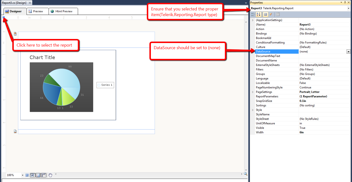 Unbound means it has not been bound with data. Select the report and set the DataSource property to (none) from the Report's Properties Window.