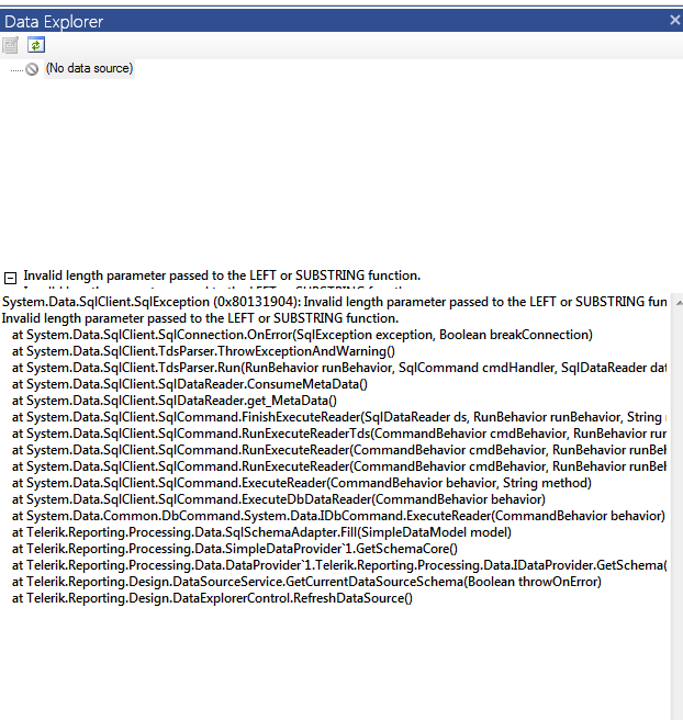 - Other reporting tool works fine with the same, but tekerik does not