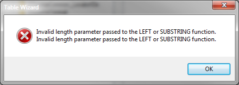 I am having an issue where if I configure the datasource for my report, it wokrs fine, but if I try to run the table wizard and to select that table source it throws an err as below: