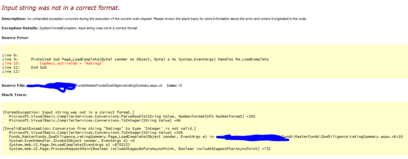 But once I click on the Initial DD (Inv) or Ratings after clicking back from the error it looks like this. (Ripped out the middle line of tabs)