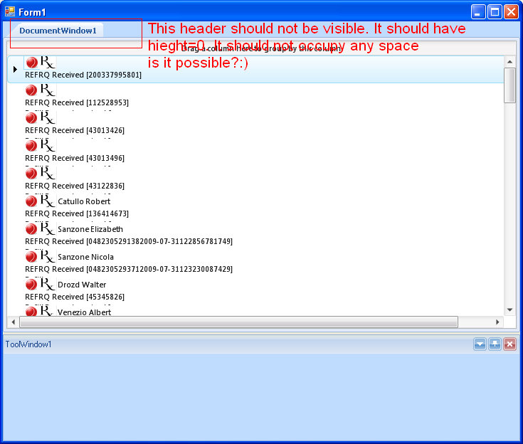 Now can you tell me a way so that I can set visibility of tab strip header. I want it should not be visible in tab strip. I am attaching snapshot which explain more.