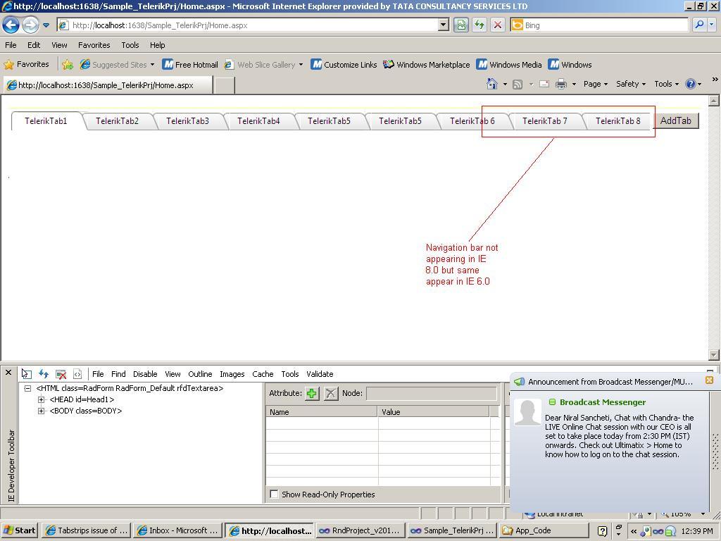 We are are using Telerik Tabstrip but the Scrolling appears in IE 6.0 but not in IE 8.0