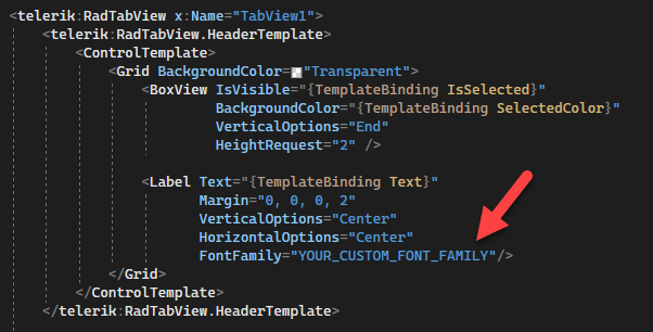 <telerik:RadTabView x:Name="PlotDataTabView" GridLayout.Row="0" ><telerik:RadTabView.HeaderItemTemplate>