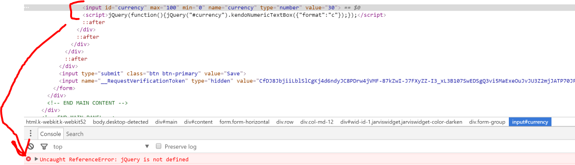 @(Html.Kendo() .DatePicker() .Name("datepicker") .Deferred())...@section scripts { @Html.Kendo().DeferredScripts()}
